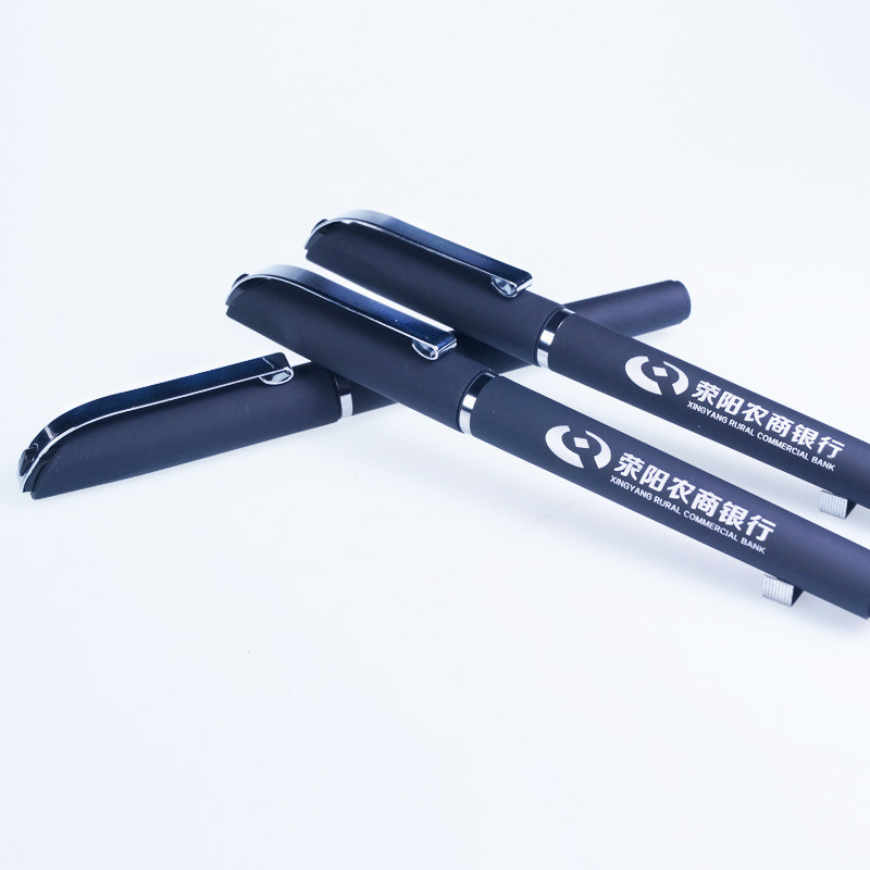黑色塑料噴膠筆桿中性筆,拔帽式金屬筆夾,0.5mm黑色油墨筆芯,個性印刷loGo適用於各企事業單位廣告宣傳品定制。