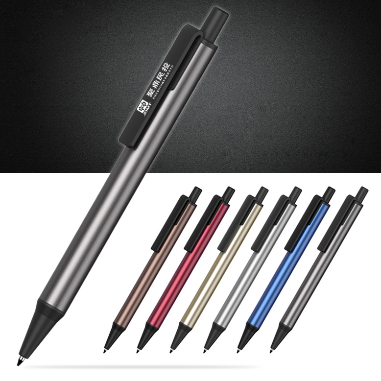 金屬圓珠筆,通體磨砂鋁管搭配黑色塑料配件,定制鐳射禮品筆的選擇,200支起接受印刷。