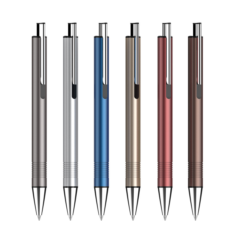 新款按動金屬簽字筆,通體磨砂鋁管搭配鍍亮配件,定制高端禮品筆的選擇,200支起接受印刷。